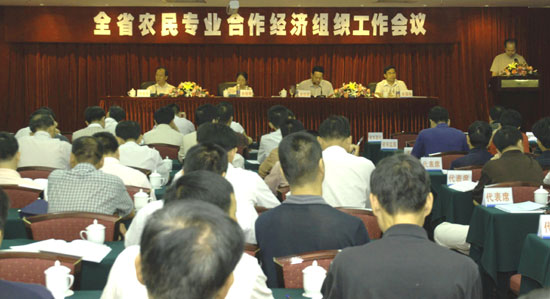 省农业厅谢悦新厅长在会上作工作报告,他表示,过去四年我省先后三批扶持了100个省级农民专业合作经济组织试点单位,其中13个被农业部批准为示范项目建设单位。未来五年内我省农民专业合作社总数将努力发展到1100个,基本覆盖全省每一个乡镇,20%的农户即200万户以上农户将加入到农民专业合作经济组织行列。