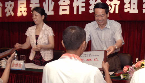 图为厅领导为2007年度省级农业专业合作经济组织示范单位授牌