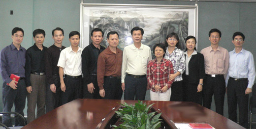 图为省农业厅林果先副厅长(左七)、市场与经济信息处邢宗和处长(左六)、赵苹科长(右五)与专家合影