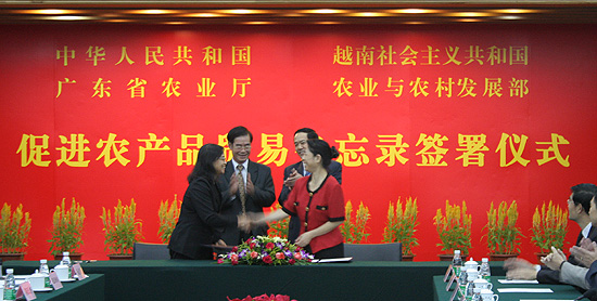 9月17日,广东省农业厅和越南社会主义共和国农业与农村发展部签署了关于促进农产品贸易的备忘录协议。