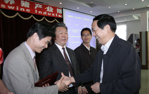 省农业厅谢悦新厅长在种猪拍卖会上讲话时指出,广东是经济强省、农业大省,更是农产品消费大省,而且毗邻港澳,畜牧业具有举足轻重的地位。2006年,我省畜牧业成效显著:战胜了历史上罕见的重灾、严密防控周边省份猪不明原因高热病等重大动物疫病的传播,实现了畜产品产量持续增长、质量稳步提高,畜禽良种繁育体系逐步完善,规模化、产业化经营有较大的发展,生产结构进一步优化,动物防疫工作得到有效加强,畜牧业综合生产能力和经济地位显著提高。据初步分析,2006年全省畜牧业产值占农业产值26﹪以上,占农民收入的近30﹪,每头商品猪比上年增效50元以上,全省养猪业新增利润近20亿元。有效保障了全省人民日益增长的畜产品消费需求,稳定了市场,稳定了社会,稳定了人心,为确保我省农业增效、农民增收和农业农村经济增长发挥了重要的作用。