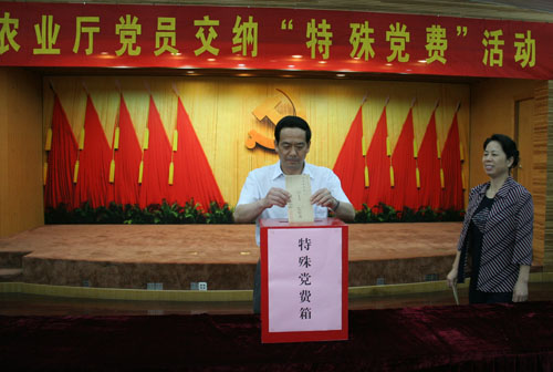 省农业厅积极响应省委的号召,今天(22日)上午组织全厅共产党员开展交纳“特殊党费”活动。厅党组成员带头缴交,党员领导干部率先垂范,广大党员干部积极响应,离退休老党员也纷纷拿出自己省吃俭用的积蓄,向四川灾区人民献爱心。短短半个小时,共收到674位党员交纳的“特殊党费”33.79万元。