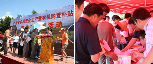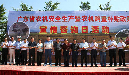 按照农业厅的部署,广东全省各级农业(农机)管理部门结合“农机安全生产月”、“农机购置补贴政策宣传月”活动,通过“宣传咨询日”、宣传车、宣传横幅标语、宣传单、宣传栏、手机信息、广播、电视、报纸等多种方式,依靠乡镇党委、政府,充分发挥乡镇农机站、村民委员会或居民委员会的宣传堡垒作用,深入基层,进村入户,大力宣传交通安全法律法规、安全常识和农机购置补贴政策,提高相关人员的安全法制观念和安全意识,让农机购置补贴这项强农惠农政策家喻户晓,人人皆知,使“农机化安全发展”和“农机化又好又快发展”的理念深入农村、深入民心,营造农机安全生产隐患治理和推进农机化发展的良好氛围,把平安和实惠送到农民手中。