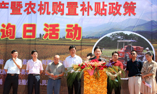 6月21日上午,广东省农业厅在连平县隆街镇举办“广东省农机安全生产暨农机购置补贴政策宣传咨询日”活动,活动内容包括农机法律、农机补贴、注册登记、驾驶考试、驾驶培训、交通安全、农机保险、农机质量、农机推广现场宣传与咨询,三千多份宣传资料被抢索一空,广大农民群众、农民机手、农机大户积极参与,现场气氛活跃,活动取得了圆满成功。
