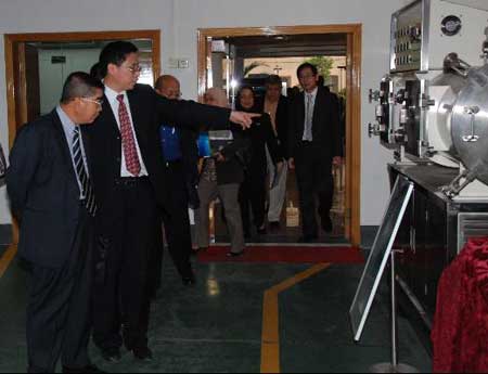 2008年2月8日下午,马来西亚科学技术及创新部部长Y.B.Datuk Dr. Maximus Johnity Ongkili一行15人来到广东省农业机械研究所,广东省农业厅副巡视员潘雪芬、省农机化管理办公室主任郑宏宣、省农业机械研究所所长林仰南、副所长张进疆、副所长陈育辉、副所长李君略以及所管理和业务部门的有关同志接待了到访的马来西亚代表团。