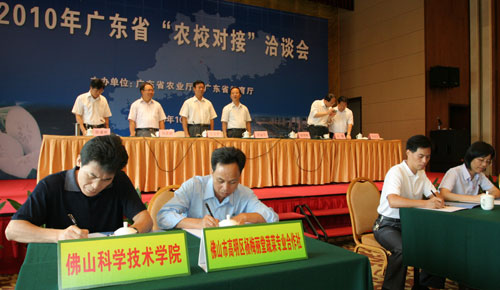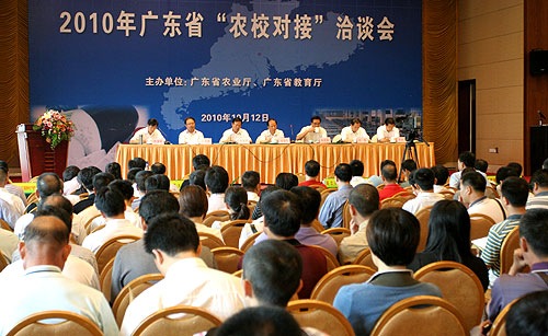 今天(10月12日),广东省农业厅、广东省教育厅在广州联合主办全省首次“农校对接”洽谈会,来自全省各地的110家农民专业合作社把他们高品质的鲜活农产品带到了会议现场,与130多所高校代表面对面对接,其中有十个“农校对接”项目在会上现场举行了签约仪式。这是广东进一步全面推进双百市场工程和农超对接,重点扶持农产品生产基地与大型连锁超市、学校及大企业等产销对接又一创新之举,必将实现高校受益、合作社发展、农民增收的多方共赢。广东省农业厅党组成员、巡视员刘金生出席了会议并作讲话。