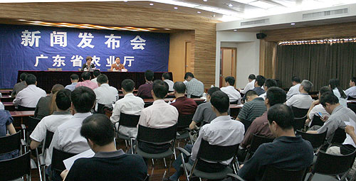 4月11日上午,广东省农业厅在广州召开新闻发布会,对2011年广东省农业主导品种、主推技术以及农业科技重点攻关领域、关键技术进行推介发布。省农业厅副巡视员潘雪芬出席了发布会,对全省2011年农业主导品种、主推技术及农业科技重点攻关领域和关键技术的有关情况作重点介绍并接受新闻记者采访。