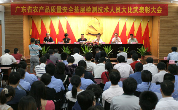 9月21日下午,广东省农业厅举行了“广东省农产品质量安全检测技术人员大比武表彰大会”,对在首届大比武中取得优秀成绩的选手和团体进行表彰,并颁发证书和奖牌。省农业厅程萍副厅长出席了大会并作讲话。