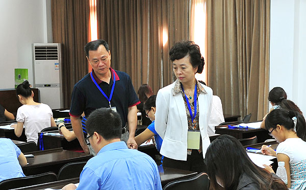 省农业厅程萍副厅长(右)亲临比赛现场和考场监考