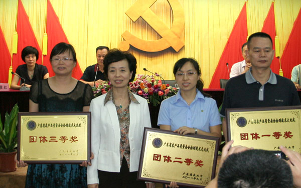 省农业厅程萍副厅长出席了表彰大会并向获奖团体颁发奖牌。她在讲话中充分肯定了首届大比武活动,表示在比赛中选手们展现出了广东农业系统质检人的科学、严谨、扎实的作风,赛出了水平、赛出了风格,展现了农产品质检人的风彩。