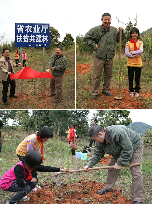 随后,张小沙专员一行与同学们一起参加了植树活动。一到达植树地点,张小沙专员就兴致勃勃地拿起了锄头忙活开来,挖坑、整土、下肥,与学生一起种树、培土、浇水,每一道工序都做得一丝不苟。大家两人一组,三人一组,很快就种下了一排排樟树。经过一番热火朝天的劳动,张小沙专员额头冒出了汗珠。看着亲手栽下的一棵棵树苗,他表示,种下一片新绿,就等于播下了一片希望;植树和育人是两件非常有意义的事,几年后这个荒坡一定是郁郁葱葱的,希望罗洞村的学生们也要刻苦努力学习,成为对社会有用的人才。