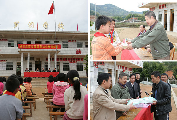 张小沙专员代表省农业厅向罗洞村小学全部在读学生赠送了一批学习用品和书籍,并为学习成绩优秀的学生赠送了助学金。据了解,去年省农业厅已经为罗洞村小学捐建了一间“希望电脑室”,启动了罗洞村扶贫教育助学基金。今年省农业厅再次来到学校赠送学习用品和助学金,令师生们倍受鼓舞。