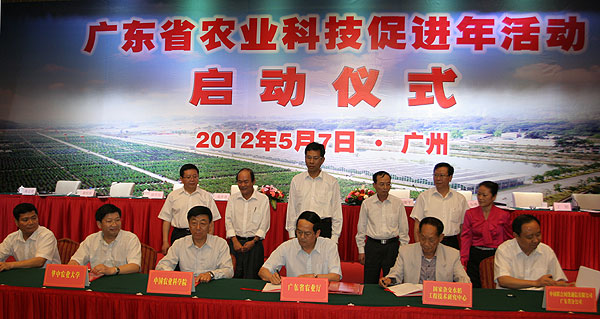 启动仪式上,广东省农业厅分别与中国农科院、国家杂交水稻工程技术研究中心、华中农业大学、深圳市经信委、中国联通公司广东省分公司等单位签署了五个农业科技合作协议,六部门将围绕广东省粮食安全、柑桔黄龙病、生物种业、农业信息化、农产品质量安全等农业科技重大问题进行联合攻关、集成示范。