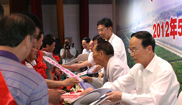 刘昆副省长指出,近年来,广东认真贯彻落实中央加快转变农业发展方式、推进“三化同步”的部署要求,围绕全省加快转型升级、建设幸福广东的核心任务,大力推进农业科技创新和推广,全面加强农业科研机构建设,建立完善省、市、县、镇四级农技推广服务网络,农业科技创新能力和农业科技推广服务水平不断提高,农业科技成果转化和先进适用技术普及应用取得显著成绩。2011年,广东省获得农业类国家自然科学奖1项、国家科学技术奖23项;全省遴选发布农业主导品种362个,农业主推技术100项;主要农作物良种覆盖率达93%,家禽良种覆盖率达85%,猪良种覆盖率达95%,全省农业科技贡献率达56%,有力地促进了全省农业增效、农民增收和农村经济发展。广东省农业科技促进年活动的启动,标志着广东省建设农业科技强省进入了新的阶段。刘昆副省长强调,全省各级要切实加强领导,精心组织谋划,大力宣传发动,使“农业科技促进年”活动开展得有声有色。要以“农业科技促进年活动”为契机,激发广大农业科技工作者服务“三农”的热情和动力,切实为农民群众解决生产上的实际问题,让广大农民群众感受到科技进步带来的实惠,在全省掀起学科技、爱科学、用科技的新热潮。