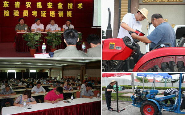 本次培训班采用理论与实操相结合的培训方式,按照农业部“三员”培训大纲要求,对学员进行了农机安全有关法律法规、职业操守、《拖拉机和联合收割机安全监理检验技术规范》(NY/T 1830-2009)及相关标准和农机安全性能检测设备使用方法等系统培训以及实操练习,并进行了严格的理论考试和实操考核,使每个学员真正掌握了农机安全检验技术规范标准和应用技能。