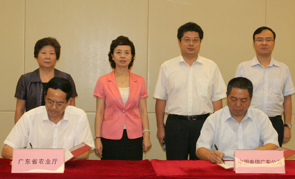 今天(8月10日)上午,广东省农业厅与中国电信广东分公司在广州签订战略合作框架协议,建立长期战略合作伙伴关系,就发挥双方优势,利用现代通信技术和互联网技术,整合政府、社会及农业企业资源达成共识,为全省提供公共性、基础性、社会性的现代农业政务服务,推进全省农业政务信息化服务水平。