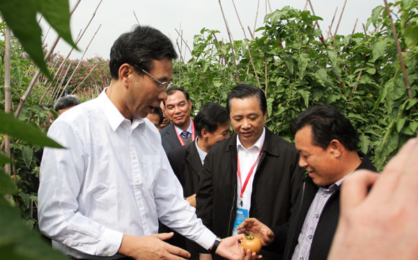 开幕仪式结束后,在刘昆副省长的带领下,嘉宾们兴致勃勃地参观了田间品种展示区。秋风送爽,瓜果飘香,面对品相优良、鲜嫩欲滴的蔬菜瓜果,嘉宾们欢声笑语,赞不绝口,现场一派欢腾、热烈的气氛!
