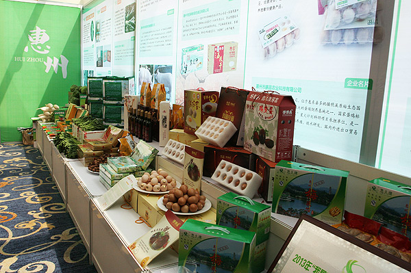 惠州位于广东省东南部,珠三角东北端,气候环境适宜,地理位置优越,水陆交通便利,农业资源丰富,是发展现代农业得天独厚的地带。全市耕地总资源212万亩,常用耕地面积173万亩,林地面积998.6万亩,是广东省的传统农业大市和粮食主产区之一。惠州农业产业特色鲜明、品种丰富、品牌众多、数不胜数,一大批农产品以其优良的品质和良好的信誉赢得了市场和口碑,走出省门,走向世界,打响了“惠州制造”的美名。相继获得了“中国梅菜之乡”、“中国年桔之乡”、“中国最大的金钱龟养殖繁育基地”、“全国最大的冬种马铃薯生产基地”、“全国最大的鲜食甜玉米种植基地”、“全国首个县级航天育种示范基地”、“内地最大供港蔬菜基地”和“广东最大的中华鳖养殖基地”等众多荣耀和美誉。目前,惠州已形成了特色农业、现代畜牧业、生态林业、健康渔业为一体的现代农业格局,全市共创建省、市名牌产品(农业类)108个,其中广东省名牌产品45个(2011年“粤农”牌被认定为中国驰名商标);中国驰名商标15件,广东省著名商标98件,市名优农产品66个,这些品牌农产品及其生产企业成为了该市农业经济发展的骨干力量。此次推介会惠州重点对“水中鲤”牌丝苗米、“万其”牌过年米、“惠牧”大白种猪、“鹏昌”牌鲜鸡蛋、“金种”麻黄鸡、“祯州”牌即食梅菜、“四季绿如蓝”牌菜心、勇记菜心、“悠久”牌梅菜、“九华”牌马铃薯、“美之源”牌梅花白萝卜、“美之源”牌大顶苦瓜、“惠绿源”中华鳖、“粤农”牌鲜荔枝干、“潮记”牌鲜冻鸭等15个名牌产品进行推介。