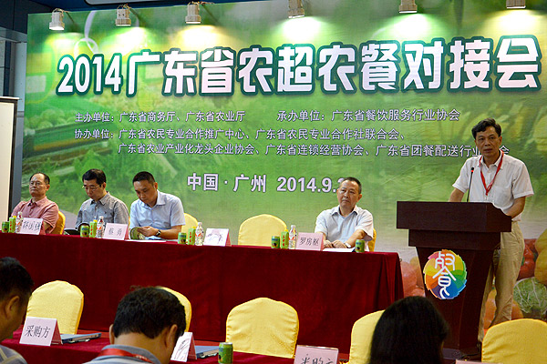 为促进我省农产品流通,9月26日,省商务厅、农业厅联合在广州琶洲展馆举办2014年广东省农超、农餐对接会,省商务厅蔡勇副厅长、省农业厅陈华富副巡视员出席对接会并讲话。50家农民合作社和农业龙头企业、20家大中型连锁超市、20家餐饮龙头企业、10家团餐配送龙头企业,以及21个地级以上市、顺德区商务主管部门和农业局代表约200人参加对接会。