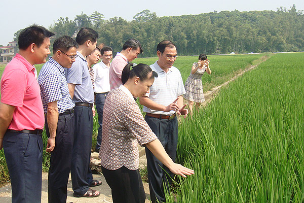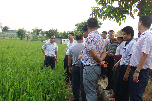 蔡汉雄副厅长一行顶着炎炎烈日深入田间地头考察晚稻生产情况,详细了解了水稻高产创建示范片的水稻生长情况及田间管理措施,并勉励基层农技部门的同志:尽管今年晚稻生产形势好,但一定要抓好后期管理,采取有力措施保穗壮籽,下大力气抓好稻飞虱、稻瘟病等病虫害的防治,确保晚稻丰收。