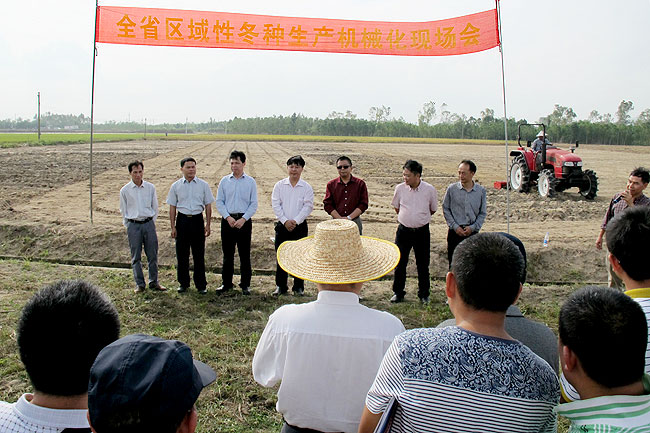 广东省农机化技术推广总站刘胜敏站长、省农机化办刘亚平副主任及来自茂名、湛江、阳江及江门4市的农机推广人员、冬种马铃薯、蔬菜种植大户等近200人参加了现场会。