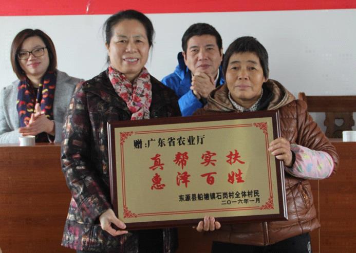 随后,贫困户丘惠娜代表全体村民将刻有“真帮实扶 惠泽百姓”的牌匾送到了余俭娥同志手中,深切地表达了村民对省农业厅三年来对石岗村扶贫工作的感激之情。
