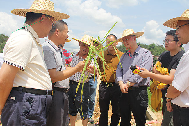 5月22日,广东省农业厅黄斌民副厅长带领种植、畜牧处室的领导和专家到信宜市开展指导救灾复产工作。黄斌民副厅长一行先后深入丁堡镇大舍坡村水稻生产基地、镇隆镇德乔村原正田蔬菜专业合作社生产基地、水口镇水口村水稻、玉米、花生生产基地、东镇街道办合丫河村养猪专业户、池垌镇东安南村水稻生产基地,了解农作物和畜牧业受灾情况。工作组实地了解灾情后,又召开救灾复产工作座谈会,听取信宜市农业局、信宜市政府、茂名市农业局救灾复产工作情况汇报。