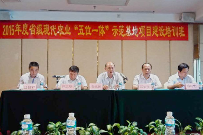 黄斌民副厅长指出了现代农业“五位一体”示范基地建设的重要意义,总结分析了项目建设情况和存在问题,并就做好“五位一体”示范基地项目和本次培训工作提出三点要求:一要提高认识,增强做好现代农业“五位一体”示范基地建设的自觉性,切实把示范基地建设好、管理好,尽快发挥项目的引领示范作用;二要真抓实干,创新工作机制,明确工作目标,落实工作责任,加快项目建设进度,确保按时按质完成项目建设任务;三要学以致用,切实提高发展现代农业的能力水平。