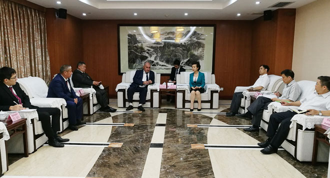 6月20日上午,广东省农业厅程萍副厅长会见了到访的吉尔吉斯共和国奥什州马哈马多夫.阿赫马特让副州长一行。程萍副厅长对副州长一行的到来表示了热烈的欢迎,简要介绍了广东省及广东农业的发展情况,提出了今后双方农业合作的方向。马哈马多夫.阿赫马特让副州长介绍了奥什州的农业发展情况,并就加强双方果蔬、畜禽类的农业合作提出了热切期望。双方对今后在促进农业投资、农产品贸易等方面加强交流与合作达成了共识,将进一步加强政府部门的互动,为企业对接搭建平台。为下一步双方农业合作奠定了基础。厅畜牧兽医局分管领导,交流合作处、种植业处的主要负责人陪同参加了会见。