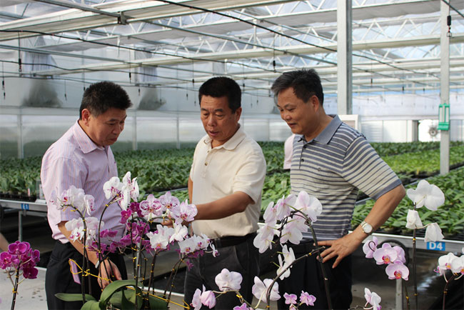 陈志强副校长一行还深入园区热带兰花(国际)种业研发中心等基地进行实地考察。珠海市海洋农业和水务局党组成员、总畜牧兽医师、农发中心主任王爱民,农发中心副主任沈汉国,中心科研部、综合部相关同志参与座谈。