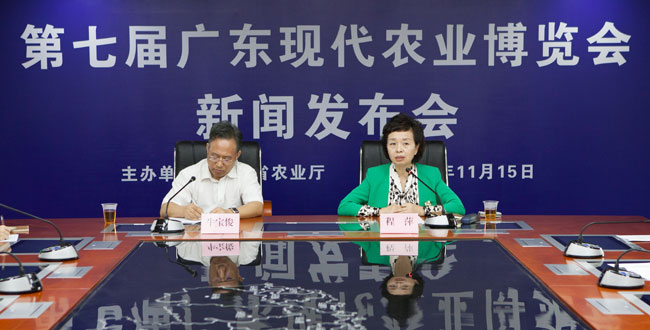 11月15日上午,第七届广东现代农业博览会(以下简称农博会)组委会在广州召开新闻发布会,第七届农博会组委会副主任、省农业厅副厅长程萍通报了第七届农博会筹备及参展情况。由广东省农业厅主办的第七届农博会将于11月25日至28日在广州琶洲广交会展馆B区9.1馆和10.1馆举行。
