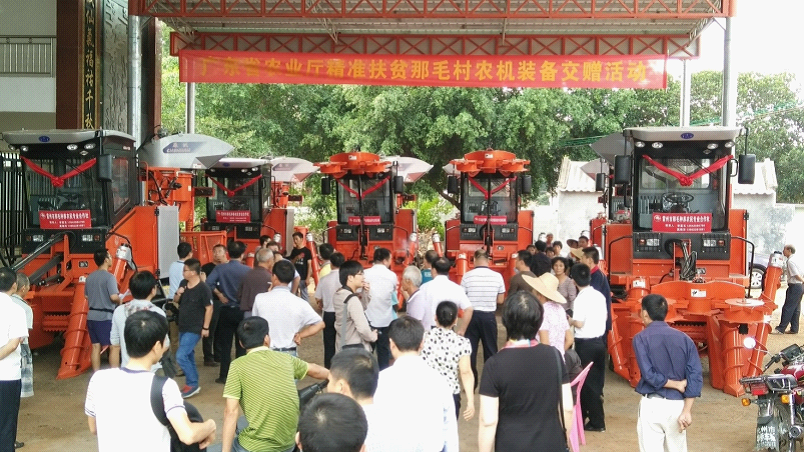 2016年11月18日,广东省农业厅精准扶贫那毛村购买的6台甘蔗收割机正式交赠。省农业厅农业机械化管理办公室、湛江市农业局、湛江市扶贫办、雷州市委市政府等领导和那毛村村民代表见证了收割机交接过程。