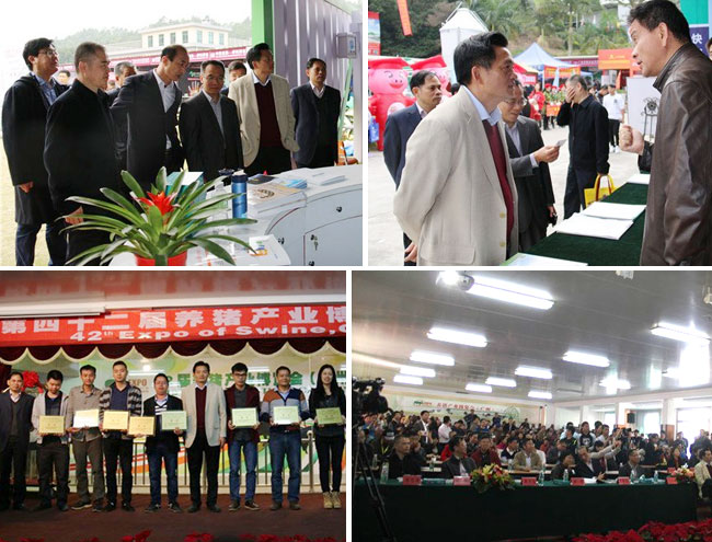 2016年12月18日上午,第42届养猪产业博览会(广州)在农业部种猪质量监督检验测试中心(广州)内成功落下帷幕。当天举行了第十四届(腾骏杯)健康养猪技术比赛颁奖、优秀服务团队颁奖以及种猪性能测定颁奖、种猪拍卖、养猪知识问题抢答,活动精彩依然,来宾热情高涨,积极互动,现场气氛非常热烈。最终来自四会三乐原种猪场耳号为188的杜洛克公猪以17000元的拍卖价成为本届拍卖会的“猪王”。农业部畜牧业司副司长王俊勋,广东省农业厅副厅长、广东省畜牧兽医局局长郑惠典,广东省畜牧兽医局、农业部全国畜牧总站畜禽资源处、浙江省畜牧技术推广总站、广东省动物卫生监督总所、广东省兽药与饲料质量检验所、广东省动物防疫物资储备中心等相关负责人一行人参观了博览会。