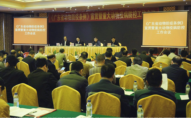 为深入宣传贯彻新修订的《广东省动物防疫条例》,进一步提高广东省动物疫病防控工作水平。3月16日上午,广东省农业厅在清远召开了广东省动物防疫条例暨重大动物疫病防控工作会议。各地级以上市畜牧兽医局局长或农业局分管副局长,兽医科(处)长,动物卫生监督所所长、动物疫病预防控制机构主要负责人及省畜牧兽医局相关处室、单位负责同志参会。省农业厅副厅长、省畜牧兽医局局长郑惠典同志出席会议并作工作部署。