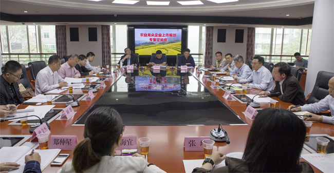 4月24日上午,广东省农业厅在广州召开农业龙头企业上市发展规划专家意见征询会,就《广东省“十三五”培育100家农业龙头企业上市发展规划》(以下简称《规划》)征询专家意见。省农业厅副厅长、省畜牧兽医局局长郑惠典同志出席会议并讲话。省政府发展研究中心副主任谭炳才、省农业龙头企业协会负责人郭仁东,省金融办、省证监局有关负责人,有关金融界、农业企业代表和高等院校专家参加会议。