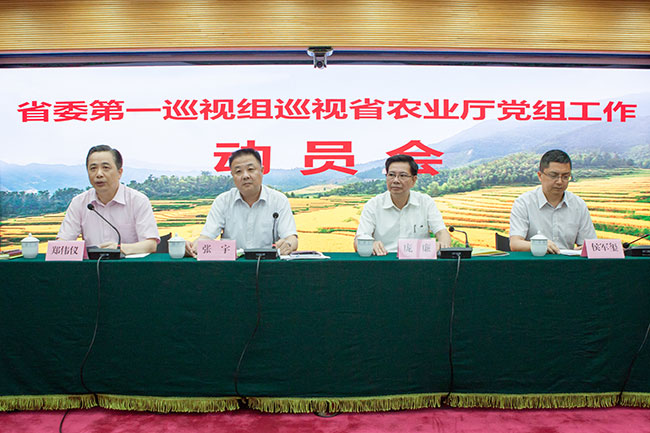 张宇同志指出,在中央的坚强领导和示范引领下,省委坚持以习近平总书记系列重要讲话精神为根本遵循,以前所未有的定力和决心深入开展巡视工作,把发现问题、形成震慑与推动改革、促进发展紧密结合起来,取得显著成效。省农业厅承担着加快广东特色农业现代化建设等重要任务,厅党组和各级党员干部要把思想和行动统一到中央和省委的部署要求上来,深刻认识对省农业厅党组开展巡视的重大意义,与省委巡视组一起,共同把这次巡视任务完成好。