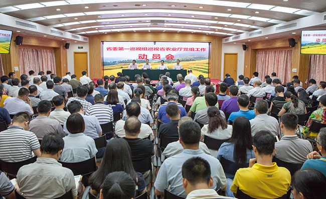 7月12日下午,广东省委第一巡视组在省农业厅召开巡视省农业厅党组工作动员会,第一巡视组组长张宇出席并作动员讲话,省委巡视办副主任庞廉提出了具体要求,巡视组副组长侯军玺主持民主测评,省农业厅党组书记、厅长郑伟仪主持会议并作了表态发言。省委巡视组成员、省农业厅机关全体公务员及事业单位班子成员参加了动员大会。省委第一巡视组从7月12日起进驻省农业厅开展巡视工作。