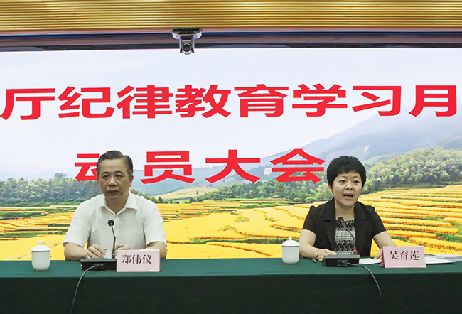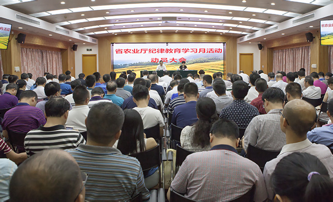 8月11日下午,省农业厅召开2017年纪律教育学习月活动动员大会。厅党组书记、厅长郑伟仪同志在会上讲话并作了题为《旗帜鲜明讲政治 不忘初心勇担当 做党性强自律严廉洁好的党员干部》专题辅导报告。会议由省纪委驻省农业厅纪检组组长、厅党组成员吴育莲同志主持。厅机关全体公务员、事业单位领导班子成员以及副科以上干部近200人参加会议。