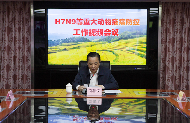 为深入分析当前H7N9等重大动物疫病防控形势,研究部署下阶段防控工作,确保不发生区域性重大疫情,11月8日上午,广东省农业厅召开全省H7N9等重大动物疫病防控工作视频会议。省农业厅厅长郑伟仪出席会议并讲话,省农业厅副厅长、省畜牧兽医局局长郑惠典主持会议。