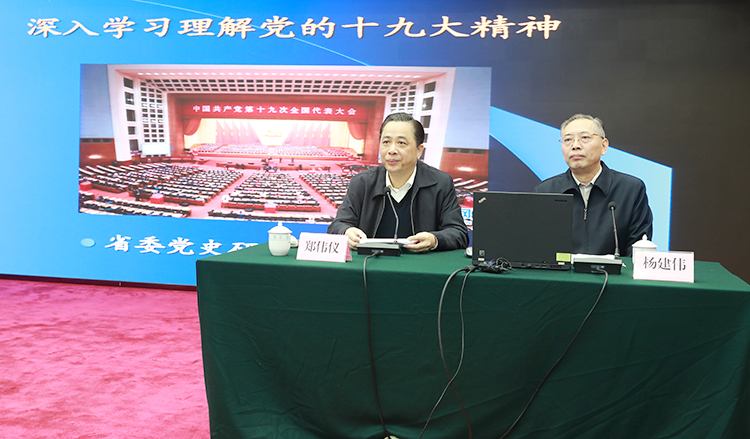 省委宣讲团成员、省委党史研究室主任杨建伟同志作了题为《深入学习理解党的十九大精神》的专题辅导报告,总结了十九大历史性贡献,深入解读了新时代、新使命、新思想、新征程等重大问题,进一步加深了广大党员干部对十九大精神实质和内涵要义的深刻认识和精准把握。