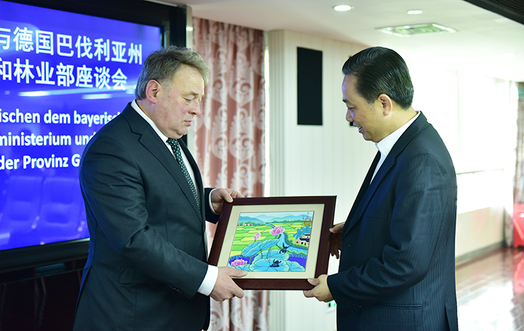 11月23日下午,广东省农业厅郑伟仪厅长会见了到访的德国巴伐利亚州食品、农业和林业部代表团。郑伟仪厅长对巴州食品、农业和林业部部长赫尔穆特·布伦纳一行的到来表示热烈欢迎,提出了在两省州间开展务实合作,加强农业技术交流,扩大农产品贸易等建议。赫尔穆特·布伦纳部长介绍了巴州农业发展情况,就世界食品问题对农业政策的挑战、农业职业教育与培训、农业技术推广体系、农业资源环境等问题进行了交流探讨。双方表示将进一步加强互动,密切合作,为下一步双方农业合作打下基础。