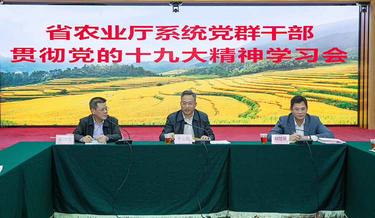 牛宝俊同志从做懂农业爱农村爱农民的干部、落实“党是领导一切的”原则、实施乡村振兴战略、选拔干部必须突出政治标准等四个方面对十九大报告和党章进行了辅导,给广大党员干部极大的启发和深刻的教育。会议传达了省委组织部关于在组织人事系统中深入开展十九大精神学习宣传贯彻的有关文件精神。总结了省农业厅党建工作以及十九大精神学习贯彻有关情况,分析了存在问题和不足,提出了今后一个时期的工作重点和具体任务。
