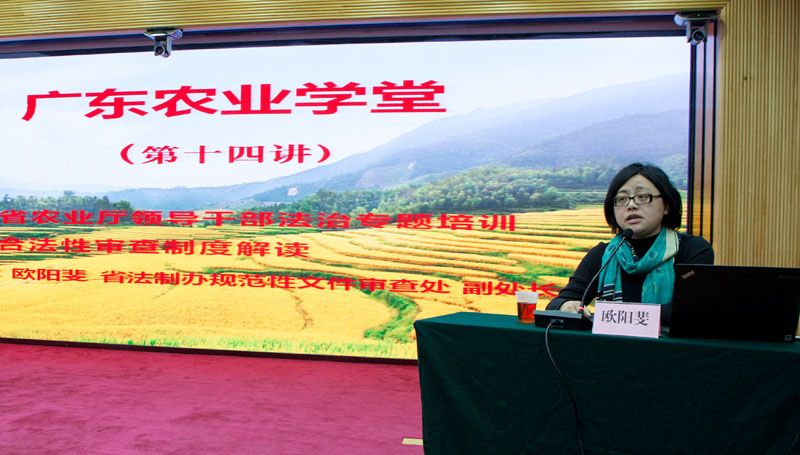 2018年2月9日上午,省农业厅举办领导干部法治专题培训班,邀请省法制办欧阳斐副处长对规范性文件合法性审查制度进行详细解读。厅机关全体公务员、事业单位主要负责人和规范性文件预审人员均参加了培训。