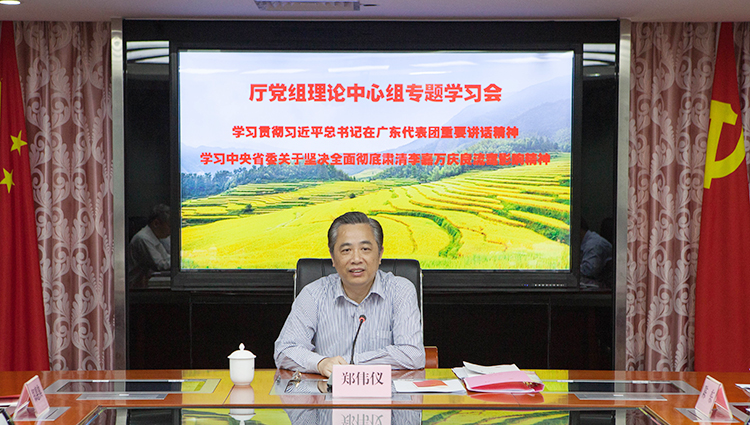 厅党组书记、厅长郑伟仪同志对进一步抓好习近平总书记重要讲话精神的学习贯彻和全面彻底肃清李嘉万庆良流毒影响提出了要求。一要把学习贯彻习近平总书记重要讲话精神持续引向深入,确保学深悟透做实,确实用讲话精神武装头脑、指导实践、推动工作。二要把厅党组坚决全面彻底肃清李嘉万庆良流毒影响专题民主生活会组织好,确保民主生活会按时高质量召开。三要围绕落实“四个走在全国前列”重要要求和实施乡村振兴战略总抓手,进一步解放思想、改革创新,坚持问题导向和目标导向,继续深化专题调研,科学制定行动方案,狠抓工作落实,加快构建推动农业农村经济高质量发展的体制机制和建设现代化农业农村经济体系。