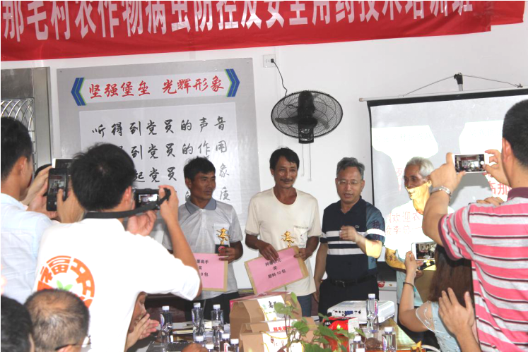 牛宝俊副厅长受邀参加了2018年度那毛福平种养专业合作社全体社员大会,亲自为番薯种植户颁发状元、高手、能手和优秀社员等荣誉称号,现场还举办了那毛村精准贫困户重大疾病平安保险和文体器材捐赠仪式。