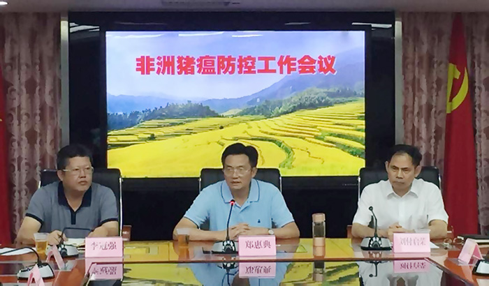 8月5日下午,郑惠典副厅长(局长)主持召开非洲猪瘟紧急防控工作暨专家研讨会,研判防疫形势,积极部署广东省非洲猪瘟疫防控工作。广东省农业科学院、华南农业大学、佛山科学技术学院有关专家及广东温氏集团、广东海大集团等有关企业专家,刘付启荣副巡视员,省畜牧兽医局兽医处、省农业厅应急办、省动物疫病预防控制中心、省动物防疫物资储备中心相关人员参会。