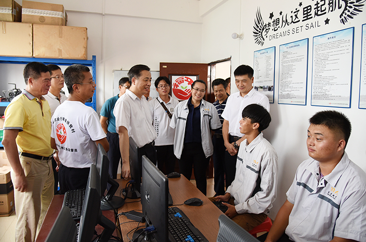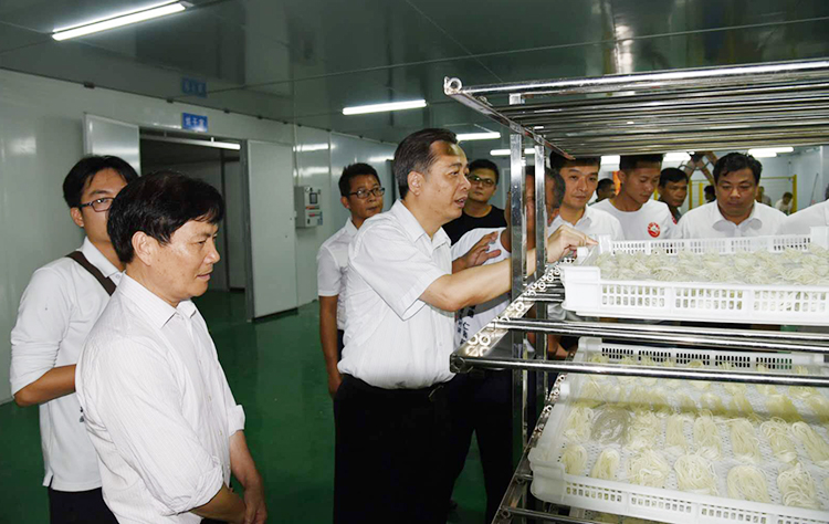 随后,郑伟仪一行沿着平坦整洁的硬底化村道边走边察看村容村貌,并听取了那毛村精准扶贫工作及新农村建设情况汇报。期间,郑伟仪还参观了那毛村扶贫车间,详细了解车间管理及运行情况。车间负责人向郑伟仪汇报,占地面积1300平方米的番薯加工扶贫车间已于今年8月成功试产,致力于红薯粉丝、番薯干等一系列番薯制品的精加工;现可实现粉丝批量生产,日产粉丝3.6吨,年收益可达数十万元,带动10多个贫困劳动力就业,并带来番薯种植、原料供应、市场销售等联动需求。郑伟仪高度肯定了那毛村产业帮扶成果,对那毛福平合作社牵头成立“新时代振兴扶贫产业联盟”、实现合作共赢的做法表示支持。
