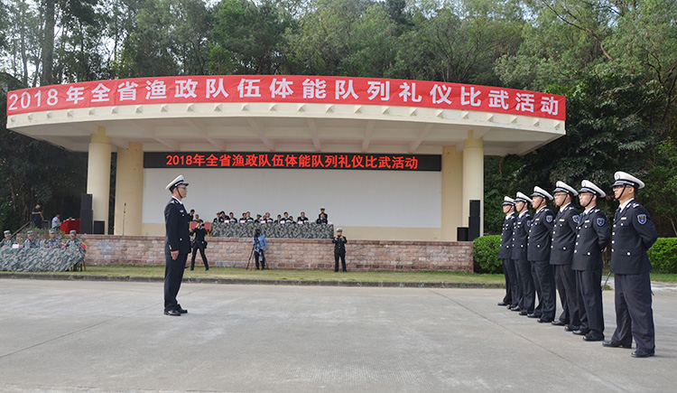 为加强全省渔政执法队伍能力建设,11月14日,广东省渔政总队在广州举办2018年全省渔政队伍体能和队列礼仪比武活动。省渔政总队秦磊政委、王汉高巡视员、吴义养副总队长、吴卓龙副总队长等领导到场观摩比赛,并为获奖单位和个人颁奖。