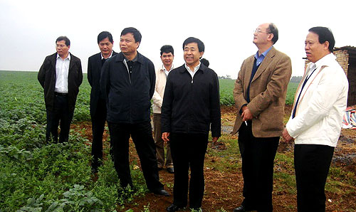 1月8日至9日,由农业部优质农产品开发服务中心王春波副主任和李连海处长组成的工作组到广东省指导冬季蔬菜生产及春耕备耕工作。工作组一行深入遂溪县和廉江市的冬季蔬菜生产基地,通过实地查看、访问农户和召开座谈会等形式,了解近期降温天气对广东省蔬菜生产的影响和当地保障春节和春季蔬菜市场供应的情况,听取当地农业主管部门冬季蔬菜生产以及春耕备耕工作汇报,同时,积极宣讲中央农村工作会议和全国农业工作会议精神以及国家强农惠农政策。