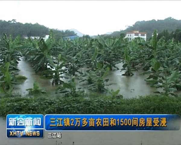 连场暴雨,使江门市新会区三江镇出现严重水浸。据初步统计,全镇共有2万亩农田、2050亩鱼塘和房屋1500间受浸,及时撤离群众80多人,暂无人员伤亡。